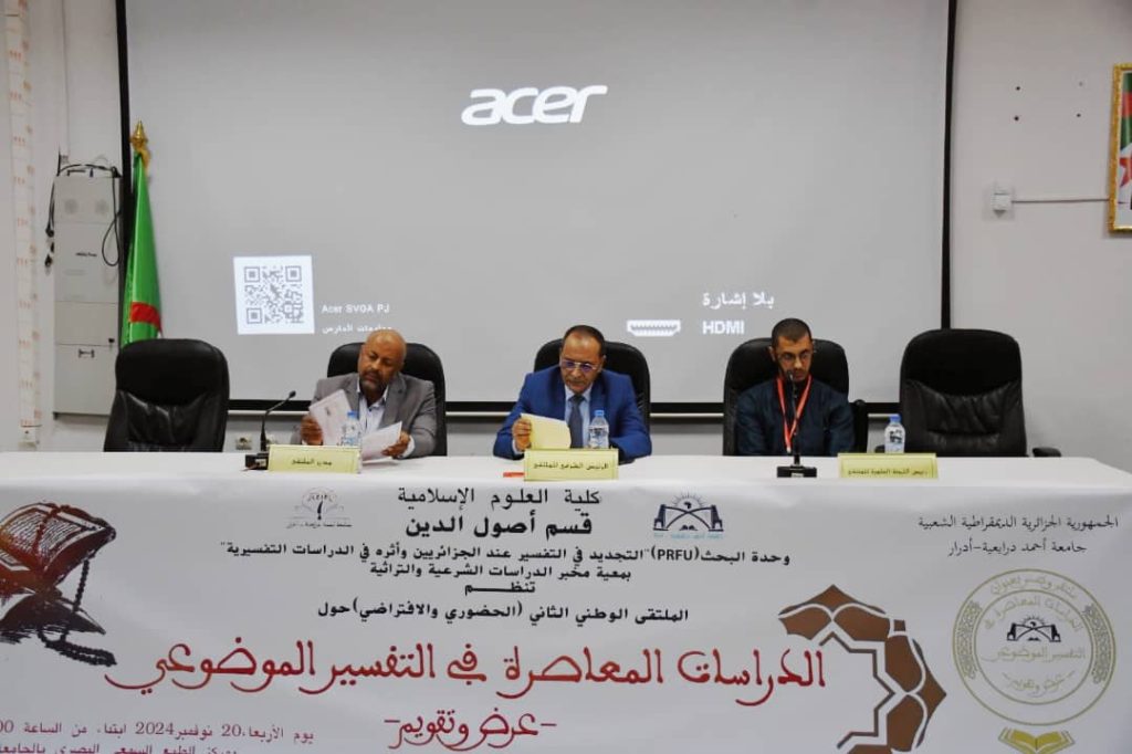 الدراسات المعاصرة في التفسير الموضوعي’عرض وتقويم’ موضوع ملتقى وطني بكلية العلوم الاسلامية جامعة أدرار (يوم 2024/11/20).