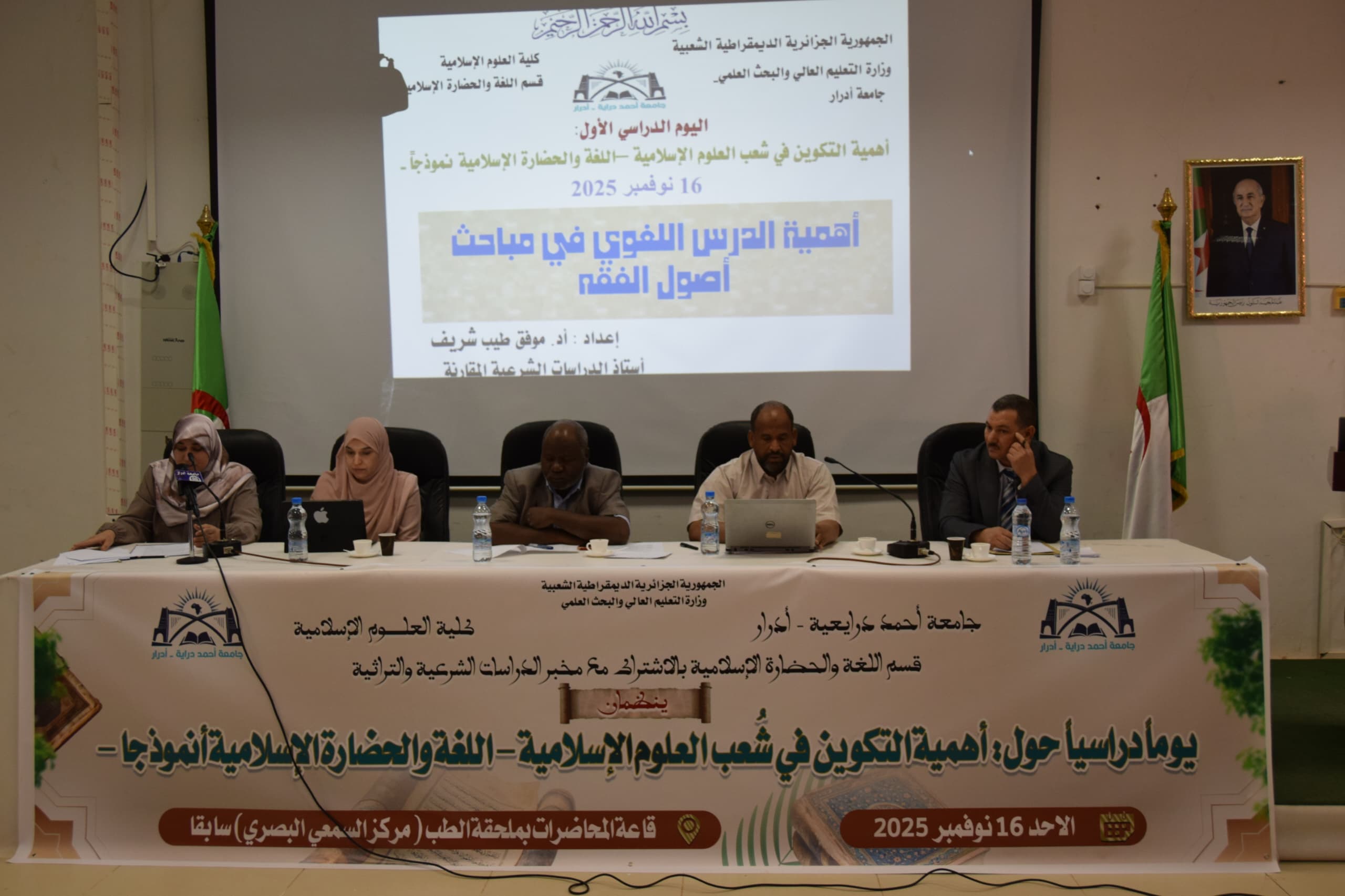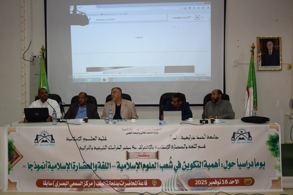 بتاريخ 16 من شهر نوفمبر 2025، وتحت إشراف السيد مدير الجامعة، نظم قسم اللغة العربية والحضارة اﻹسلامية بكلية العلوم اﻹسلامية وبالتعاون مع مخبر الدراسات الشرعية والتراثية يوما دراسيا تحت عنوان: “أهمية التكوين في شُعب العلوم اﻹسلامية – اللغة والحضارة اﻹسلامية أنموذجا-”
